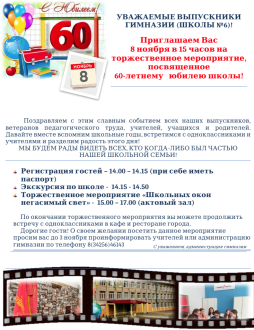 Приглашаем 8 ноября в 15:00 на торжественное мероприятие, посвященное 60-летнему юбилею школы! 13.10.2025